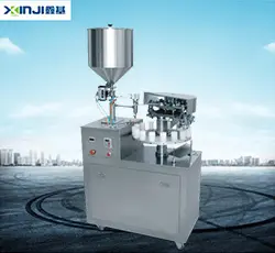 複合軟管灌裝封尾機采用全不鏽鋼制作,工作過程采用按鈕控制:人工上管8-16工位自動回轉、定量灌裝、自動切斷、加熱封尾、切尾、成品退出。所有工作采用高精度氣缸全行程控制,灌裝量調節方便,灌裝速度可調。該機适用于各種規格的複合軟的灌裝、封尾、日期打印、切尾。封尾外形美觀整齊,封合牢固,計量精度高,穩定性好。根據物料特性的不同可選配料鬥加溫系統、防拉絲灌裝頭。